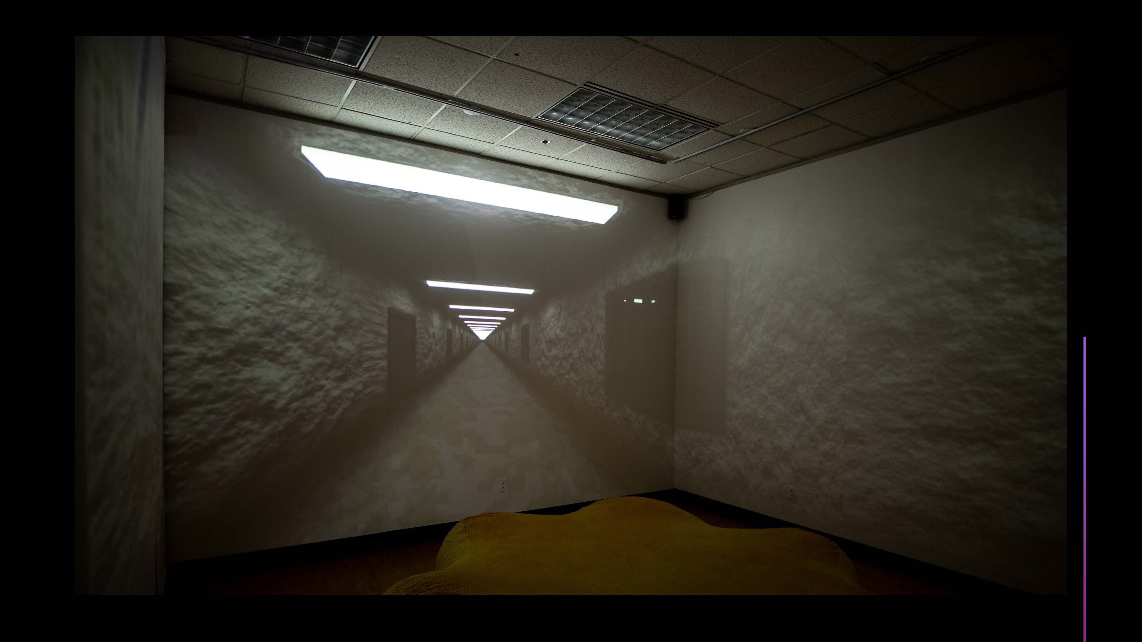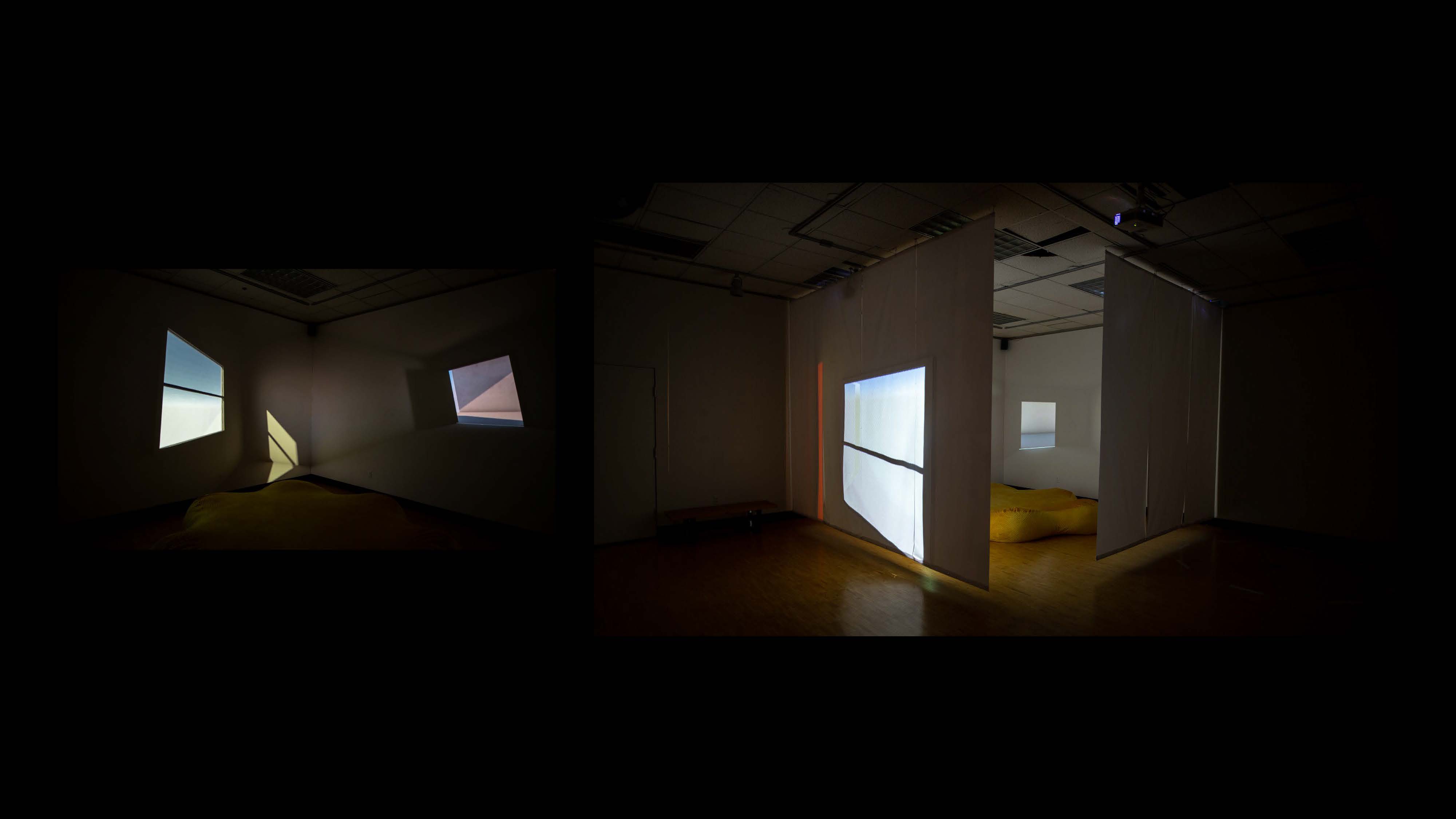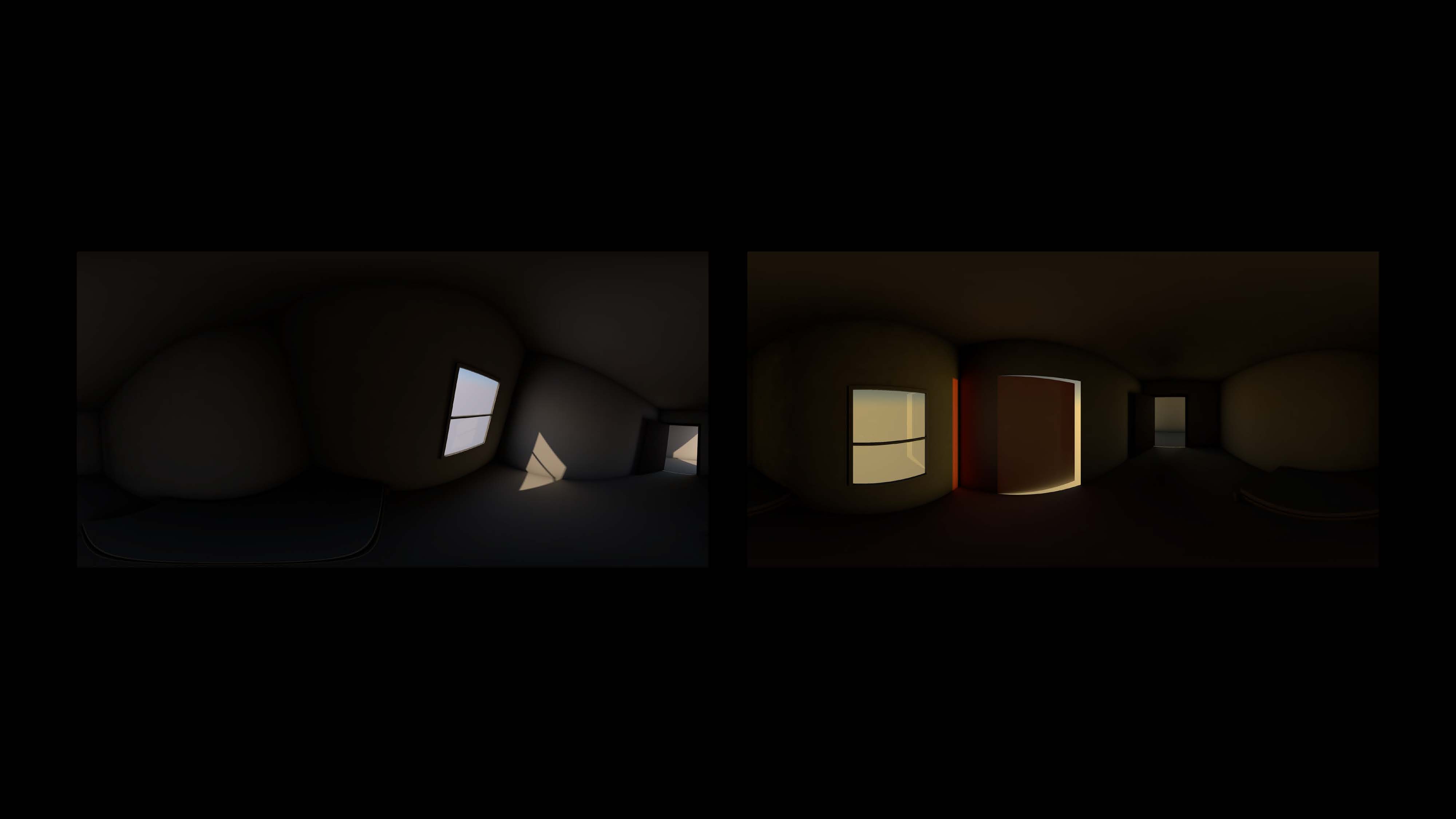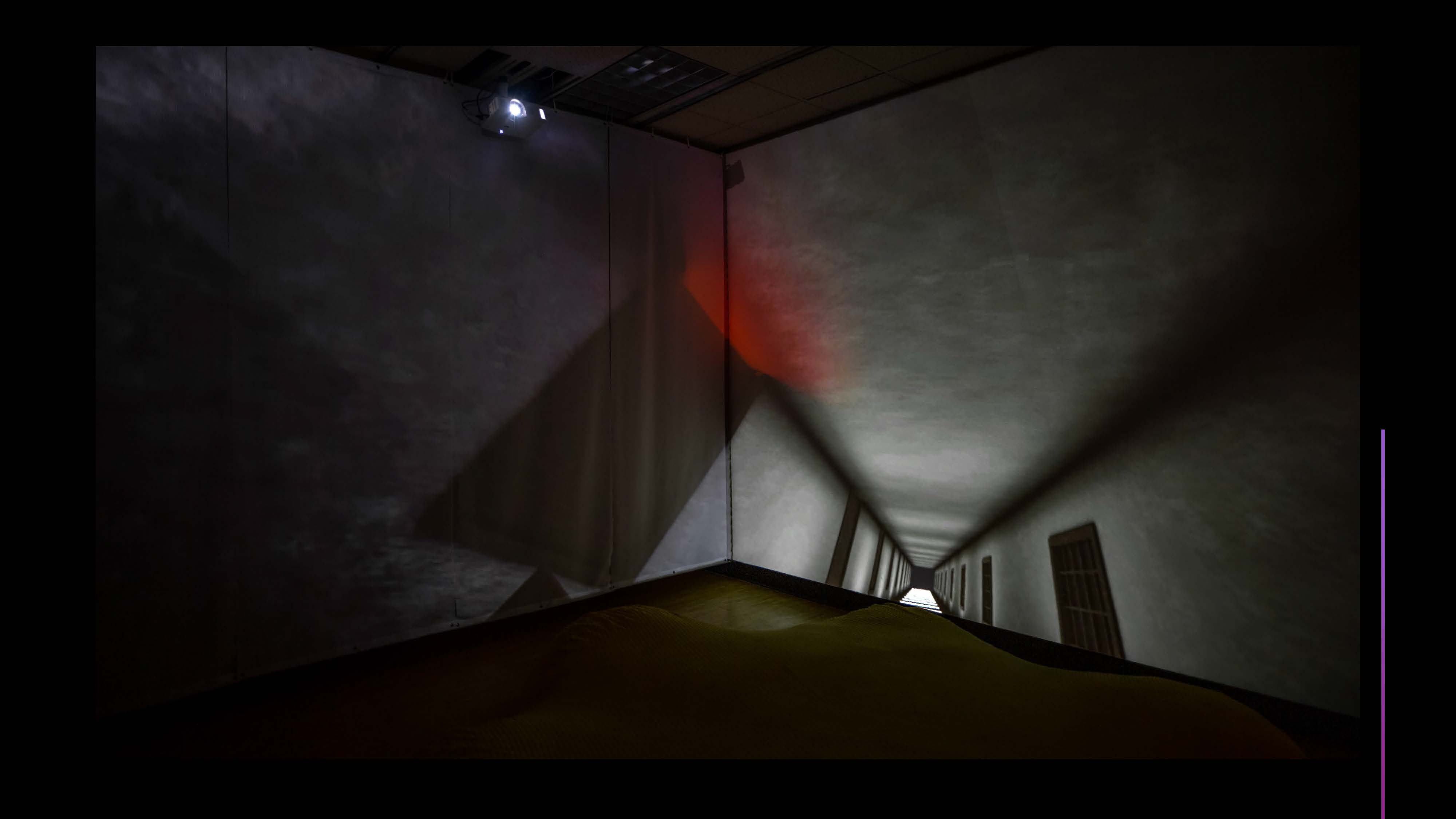 For this exhibition, the piece was shown in both a VR headset, and projected onto two walls and a custom projection screen.